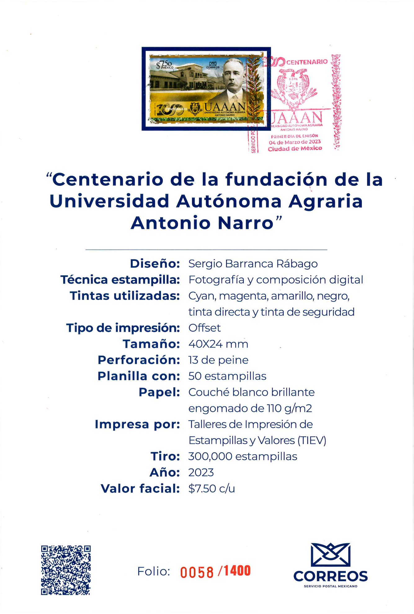 Emitida el 4 demarzo del 2023, con formato de 14x21 cm, cartulina sulfatada de 12 puntos