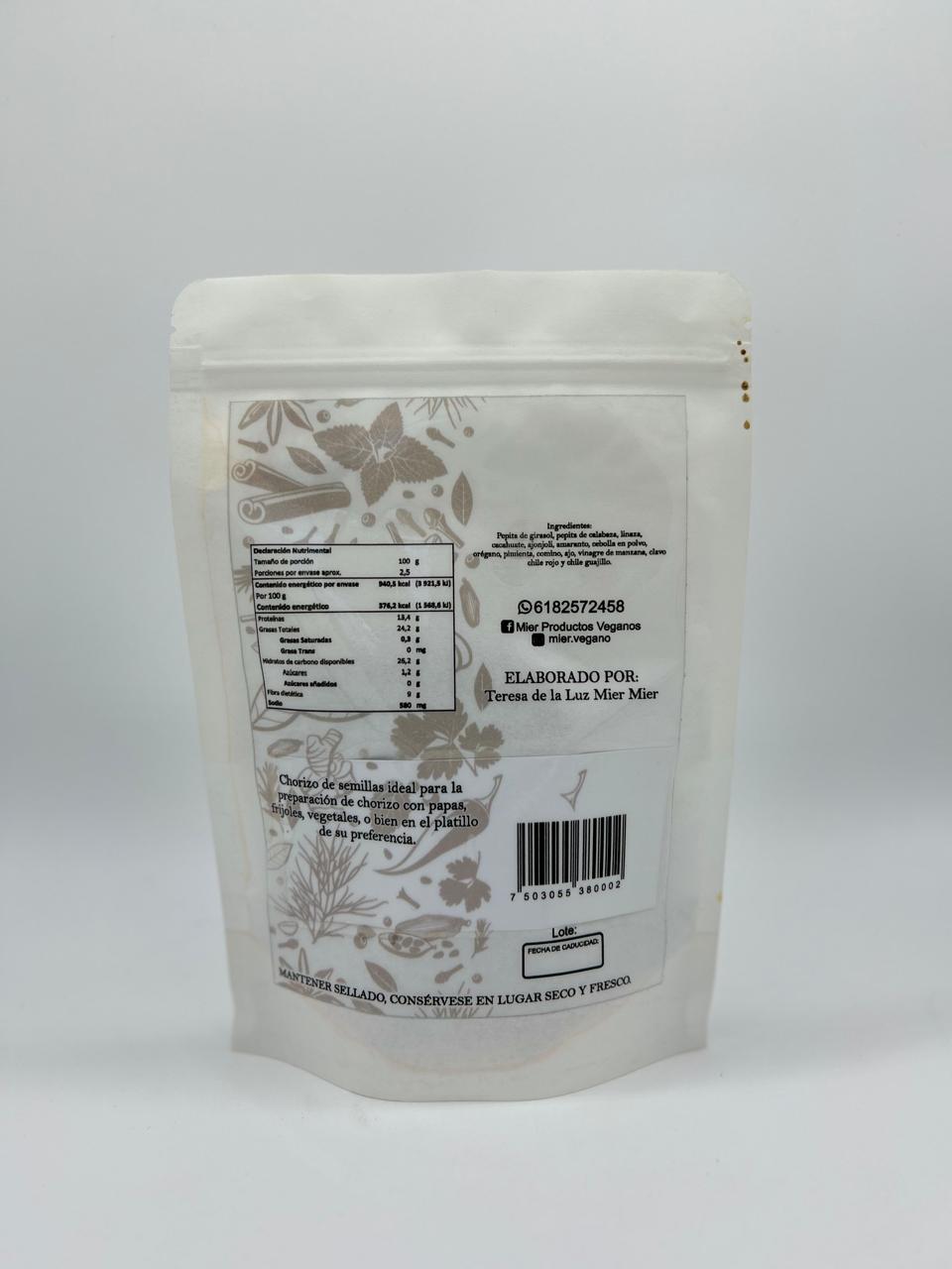 Chorizo de semillas ideal para la preparacíón de chorizo con papas, frijoles, vegetales, o bien en el platillo de su preferencia.
