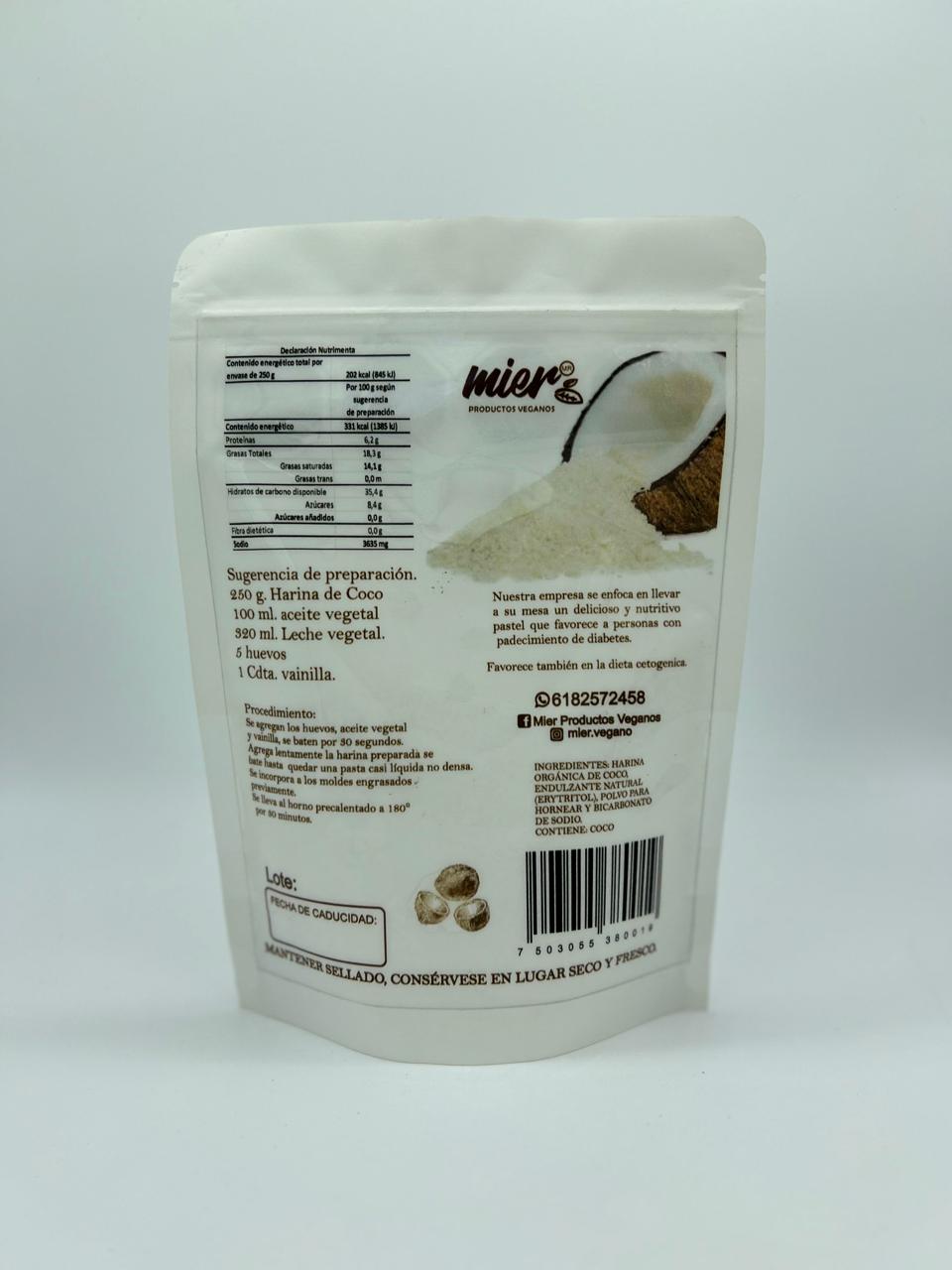 Harina de Coco Preparada para Pastel Vegetariana y KetoCont. Neto 250g.