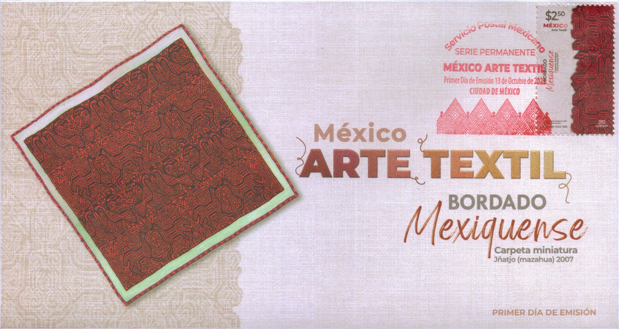 Timbre postal: México Arte Textil, Bordado Mexiquense