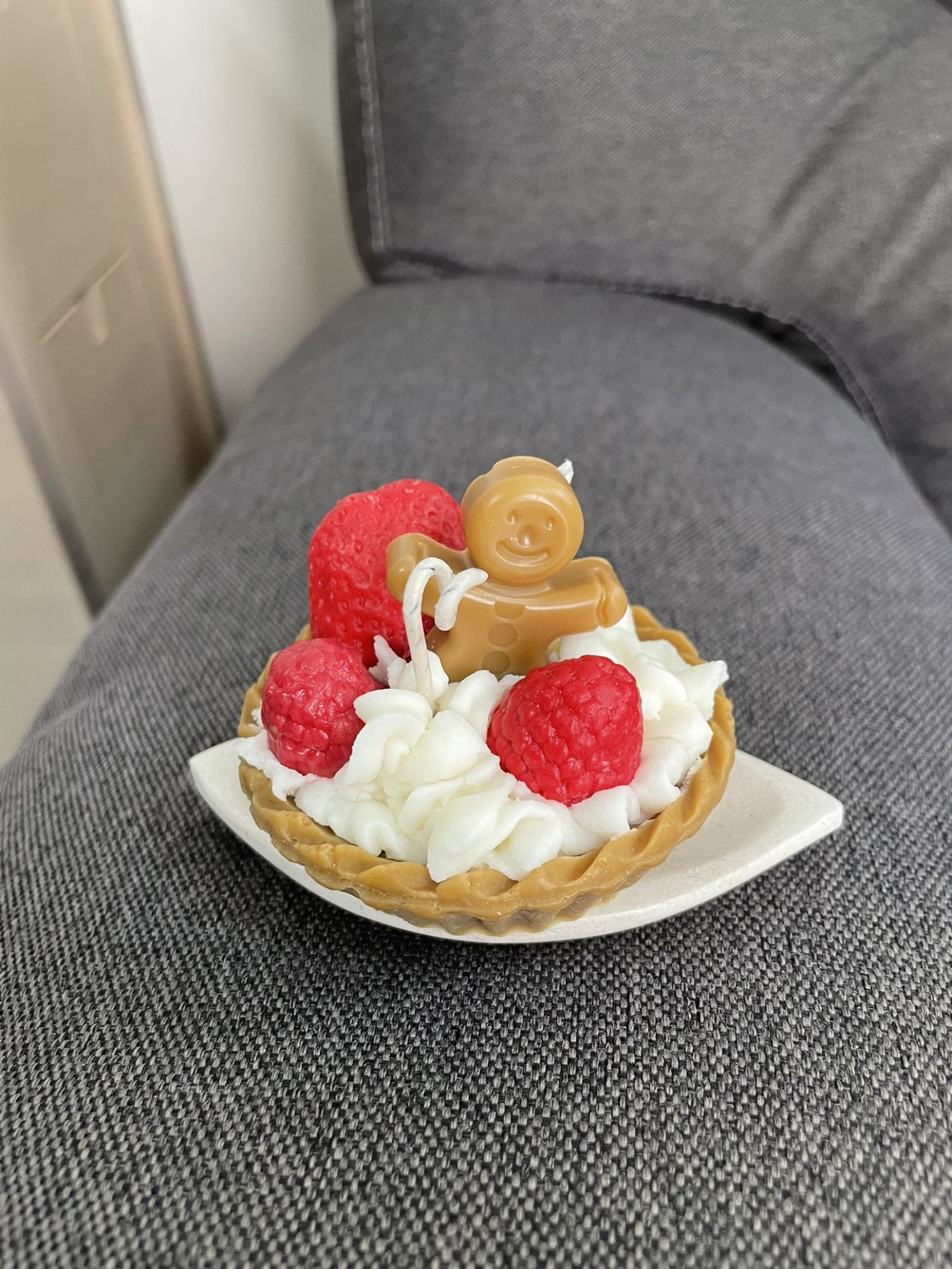 Par de velitas decorativas, incluye un wafle y una tarta, ambas con fresas que aporta ese aroma irresistible a fresas frescas.