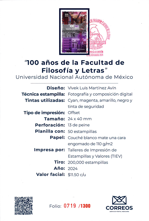 Emitida el 26 de noviembre de 2024, con formato de 14x21 cm, Couché blanco brillante, engomado de 110 g/m2