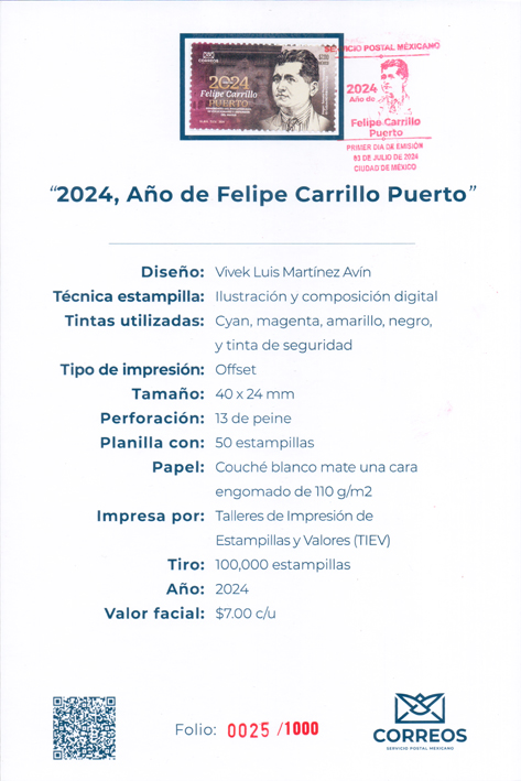 Emitida el 3 de julio del 2024, con formato de 14.5x21.5 cm, Cartulina sulfatada de 12 puntos