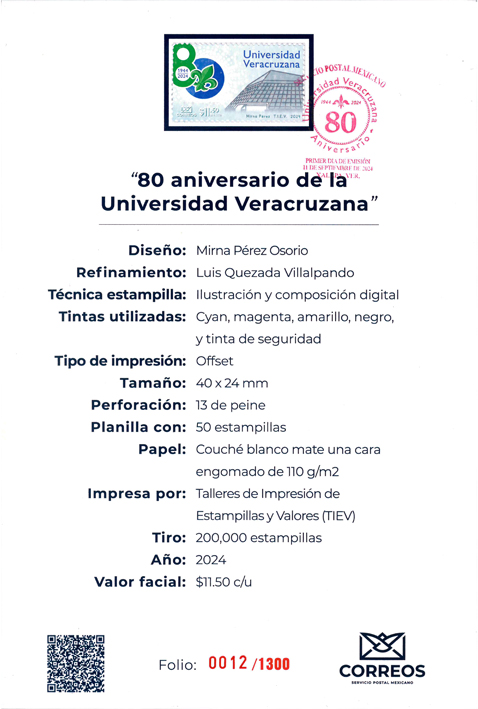 Emitida el 11 de septiembre del 2024, con formato de 14.5x21.5 cm, Cartulina sulfatada de 12 puntos