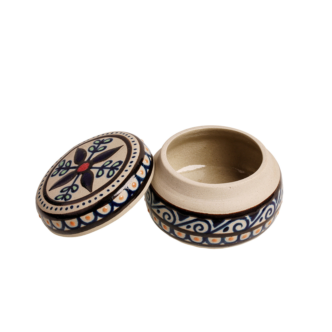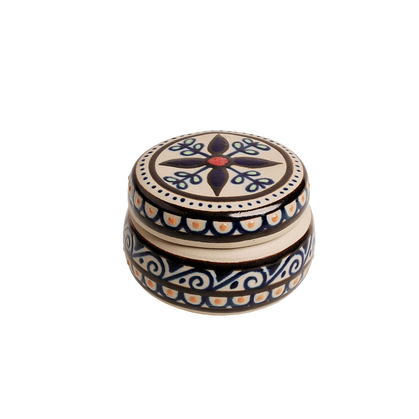 Medidas: 8 cm de diámetro x 5.5 cm de altura, incluyendo tapadera