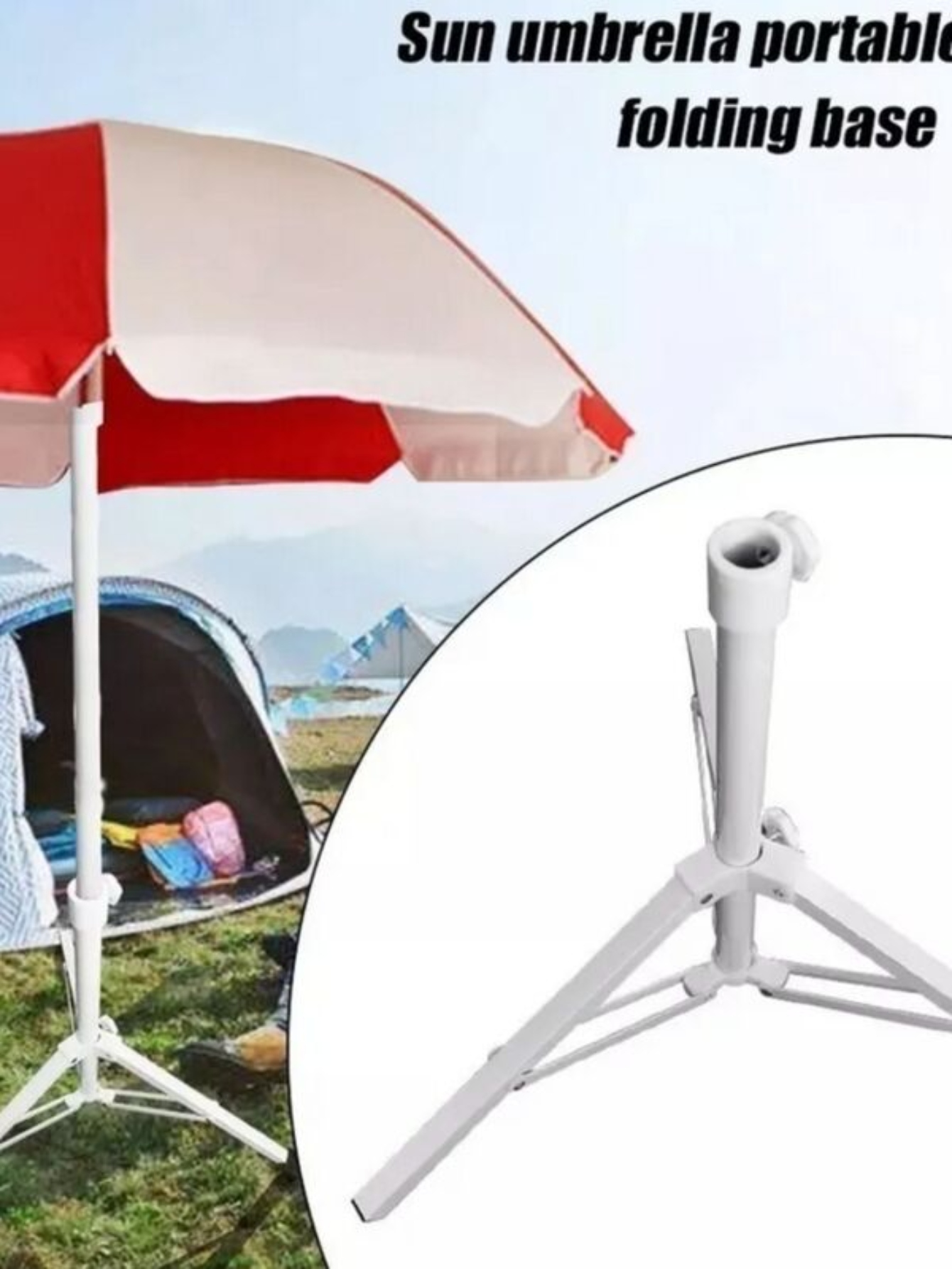 Base Tripee metal Plegable y fácil de transportar. Adecuado para postes de sombrilla con un diámetro de aproximadamente 2.60 mt Universal para 2,4-3,2 m sombrilla
