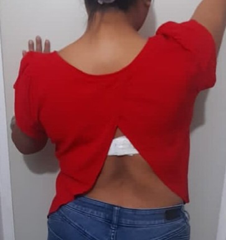 Blusa color roja, manga corta, descubierta de la espalda, talla L, en excelente estado. Dudas favor de preguntar. Prenda de segunda mano.