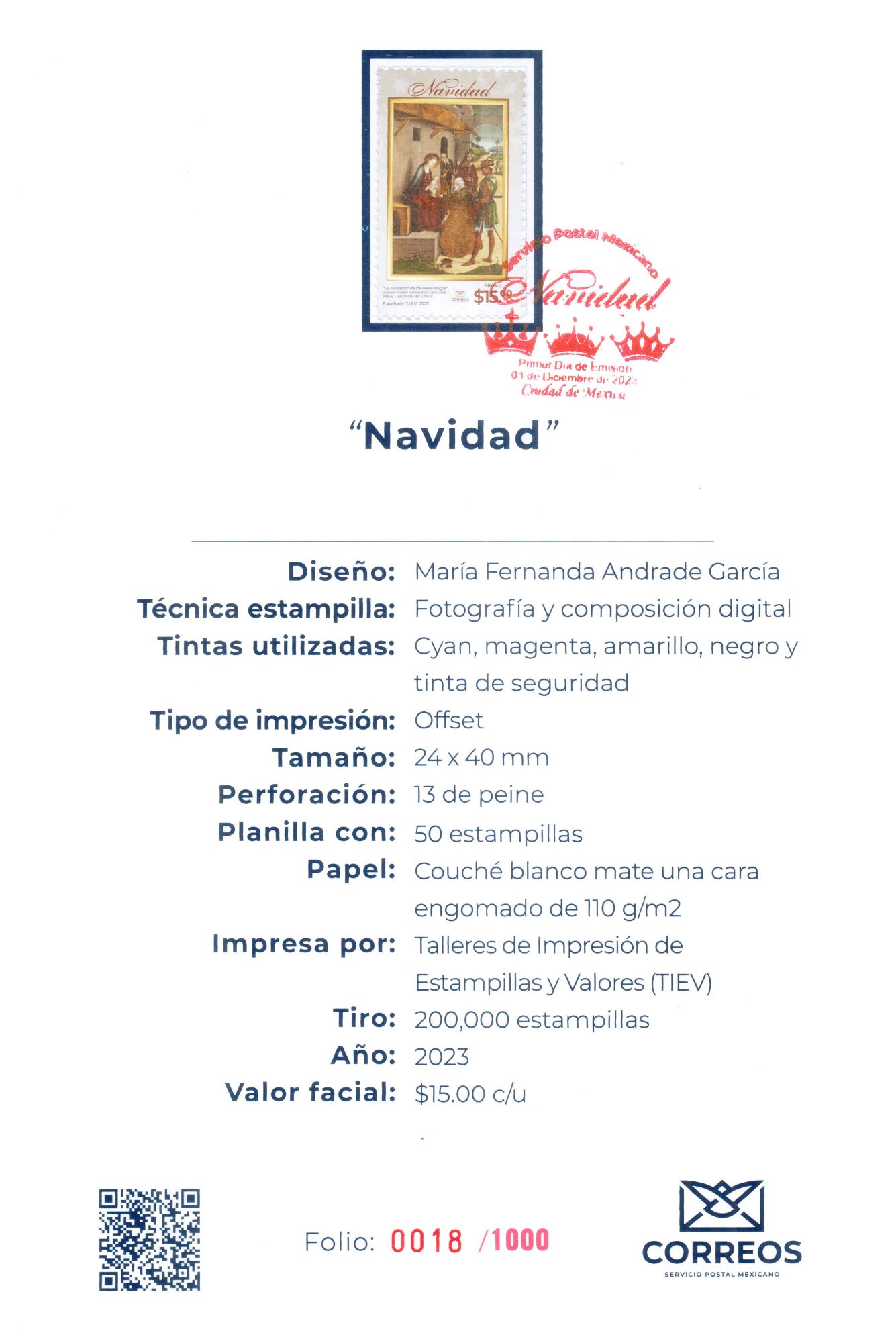 Emitida el 1 dediciembre del 2023, con formato de 14.5x21.5 cm, cartulina sulfatada de 12 puntos
