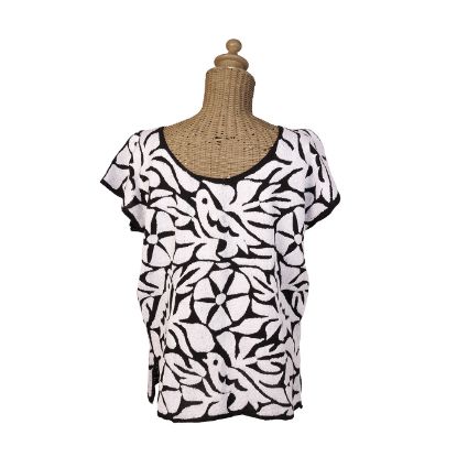 Los ""tenangos"" han logrado posicionarse nacional e internacional mente como un textil Otomí de gran valor cultural, por su técnica de bordado a mano, caracterizado por figuras inspiradas en la naturaleza y plasmada en vivos colores. Pieza realizada por la maestra María Rosales. Talla chica.