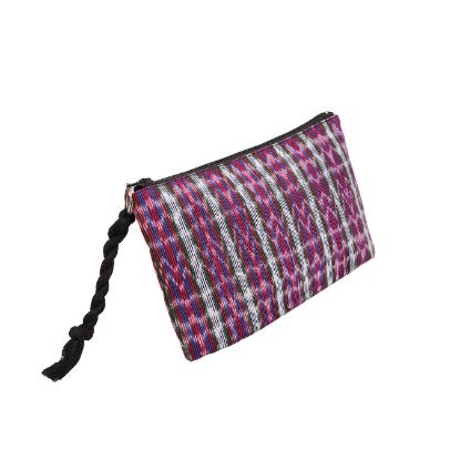 Linda bolsa realizada en telar de cintura por la artesana zapoteca Margarita Mendoza. En ella combina con gran destreza los colores rosa y naranja dando como resultado una pieza única.