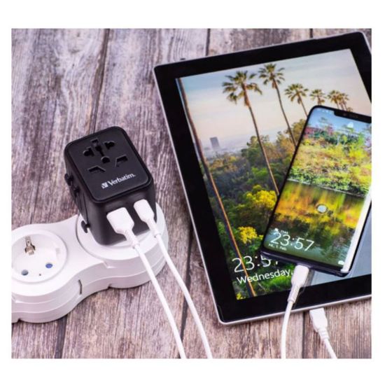 El adaptador universal de viaje Verbatim puede utilizarse en más de 180 países: llévelo a todas partes y no se quede nunca sin batería. Este multienchufe mundial a mundial le permitirá conectarse a suministro de alimentación local de todo el mundo y recargar dispositivos como ordenadores portátiles y baterías de cámaras. Los puertos USB-C y USB-A de la parte inferior pueden cargar todos sus dispositivos USB, incluidos smartphones, altavoces Bluetooth, tabletas, power banks y Kindles.