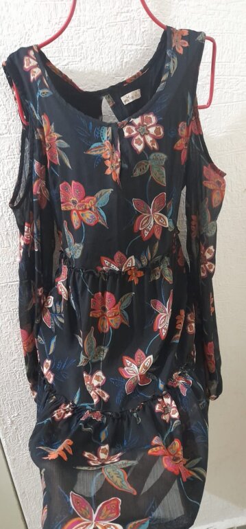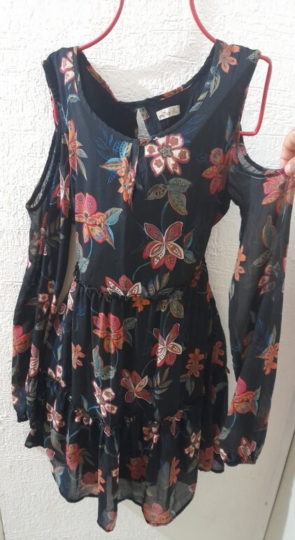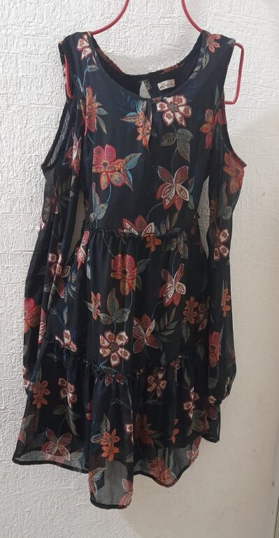 Hermoso vestido color negro, y flores, marca Hollister, talla xs cuenta con forro, de la parte de los hombros es descubierto, mangas largas y olgadita. Excelente estado.